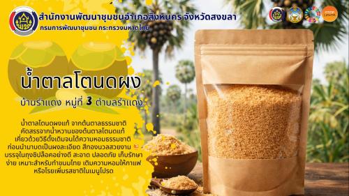 น้ำตาลโตนดผง บ้านรำแดง หมู่ที่ 3 ตำบลรำแดง ของดีจากภูมิปัญญาท้องถิ่น แปรรูปจากน้ำหวานต้นตาลโตนดแท้